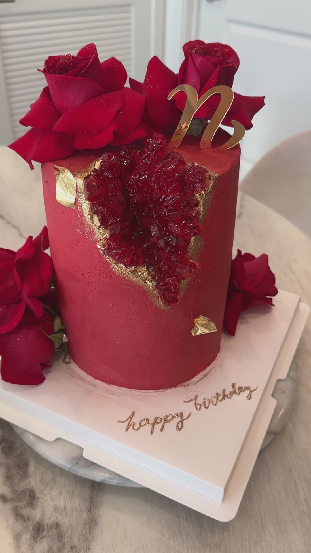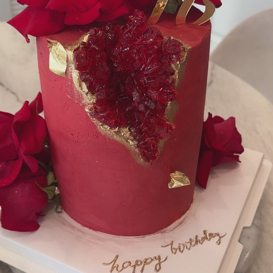 Ruby Red Crystal Cake with Fresh Red Roses - 6”